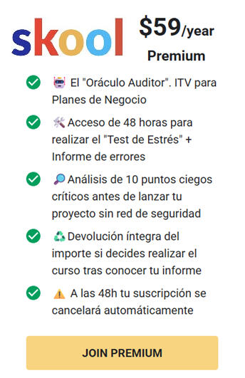 1. ¿Es el Oráculo una persona o una Inteligencia Artificial? El Oráculo es un motor de auditoría basado en IA, entrenado específicamente con la metodología de ingeniería de negocios de Haz Tu Plan. No es un chat genérico; es un algoritmo programado para estresar métricas financieras y detectar fallos estructurales en modelos de negocio reales.2. ¿Necesito tener conocimientos de finanzas para usarlo? No. El sistema está diseñado para que cualquier emprendedor pueda usarlo. Si conoces tus números básicos (cuánto vendes, cuánto te cuesta producir y cuáles son tus gastos fijos), nuestra Hoja de Captura de Datos te guiará para que el Oráculo pueda procesar la información sin errores.3. ¿Qué pasa si el resultado de mi auditoría es negativo? Ese es, precisamente, el mayor valor del Oráculo. Un diagnóstico "en rojo" no es un fracaso, es una auditoría preventiva exitosa. El informe te indicará exactamente qué "engranaje" está fallando (precios bajos, costes de captación altos, falta de margen, etc.) para que puedas refactorizar tu modelo antes de perder dinero real.4. ¿Puedo hacerle preguntas al Oráculo sobre mi negocio? No. Por diseño y rigor técnico, el Oráculo Auditor es un sistema de procesamiento de una sola vía. Recibe datos y emite un informe. No admite conversación ni consultoría interactiva. Si buscas acompañamiento estratégico, resolución de dudas o mentoría directa, el siguiente paso es el Programa Haz Tu Plan.5. ¿Sirve para cualquier tipo de negocio (físico o digital)? Sí. Los principios de la ingeniería financiera son universales. Ya sea una cafetería en Chamberí, un e-commerce de suscripción o una agencia de servicios, los 10 Pilares de Estrés se adaptan para calcular la viabilidad real del flujo de caja y la eficiencia operativa.6. ¿Cuánto tiempo tarda en generar el informe? Una vez introducidos los datos o cargado tu documento, el procesamiento es prácticamente instantáneo. Recibirás tu diagnóstico de 4 páginas en segundos dentro de la plataforma Skool.7. ¿Qué diferencia hay entre el Auditor (59€) y el Programa Completo (397€)? El Auditor es un diagnóstico técnico puntual: te dice qué está mal en tu plan. El programa Haz Tu Plan es la solución de ingeniería: te enseña cómo construir un negocio blindado desde cero, te da las herramientas de cálculo avanzadas y te permite interactuar con el Oráculo VIP (consultoría) y la comunidad Alumni.